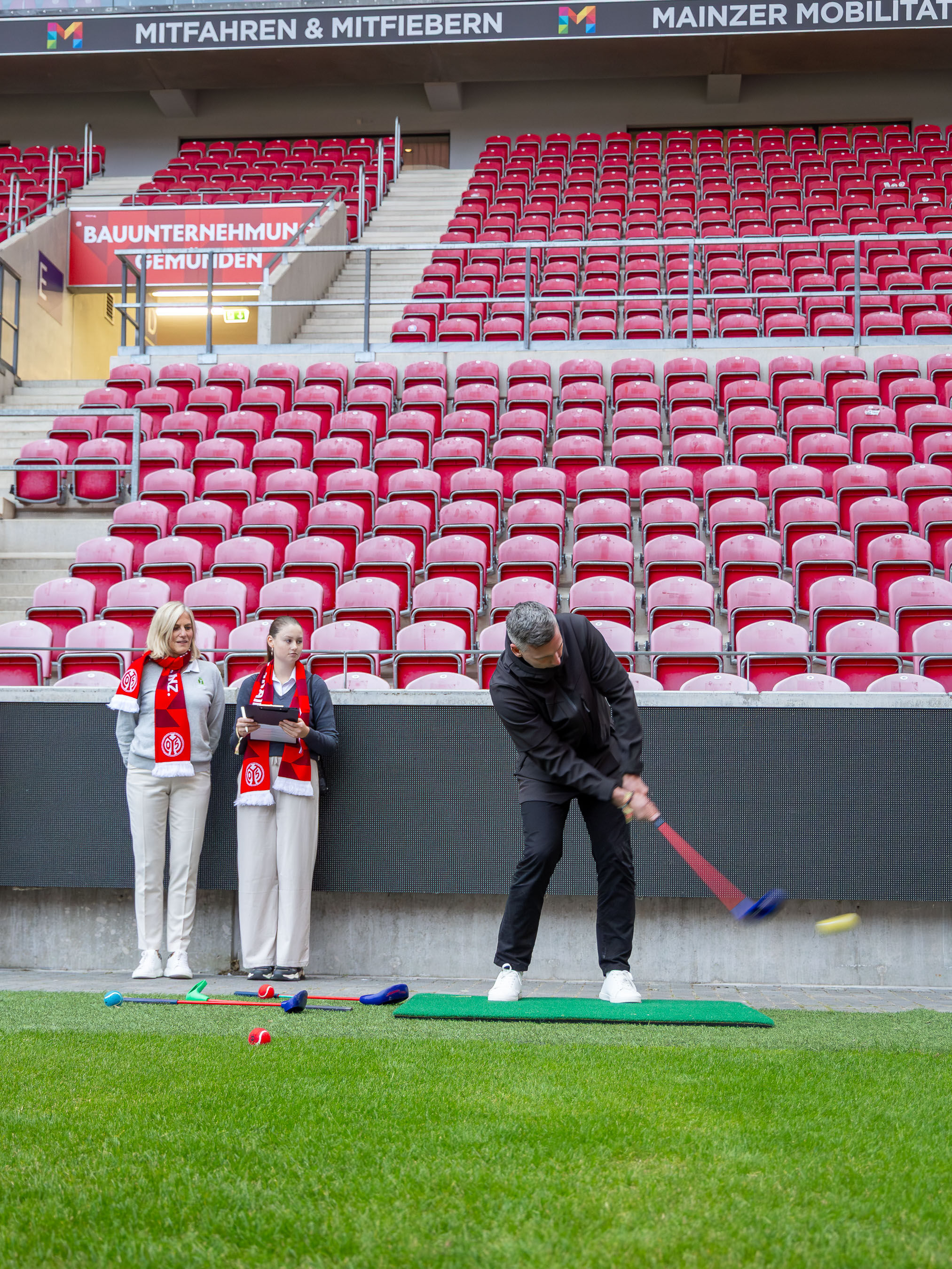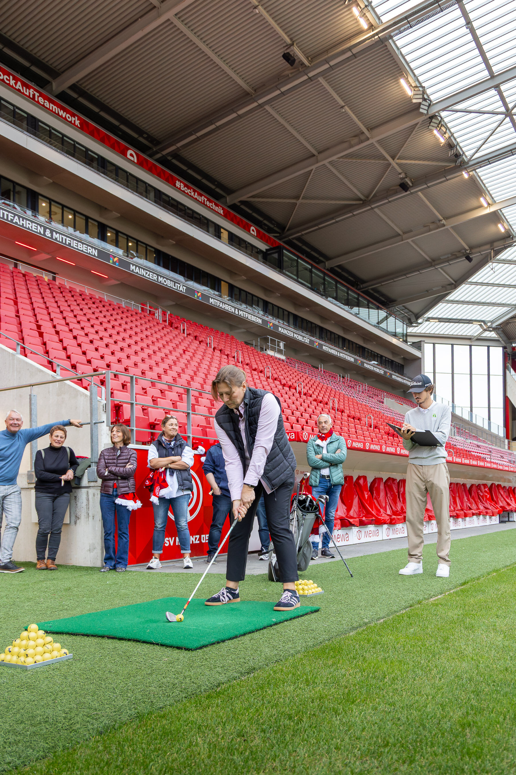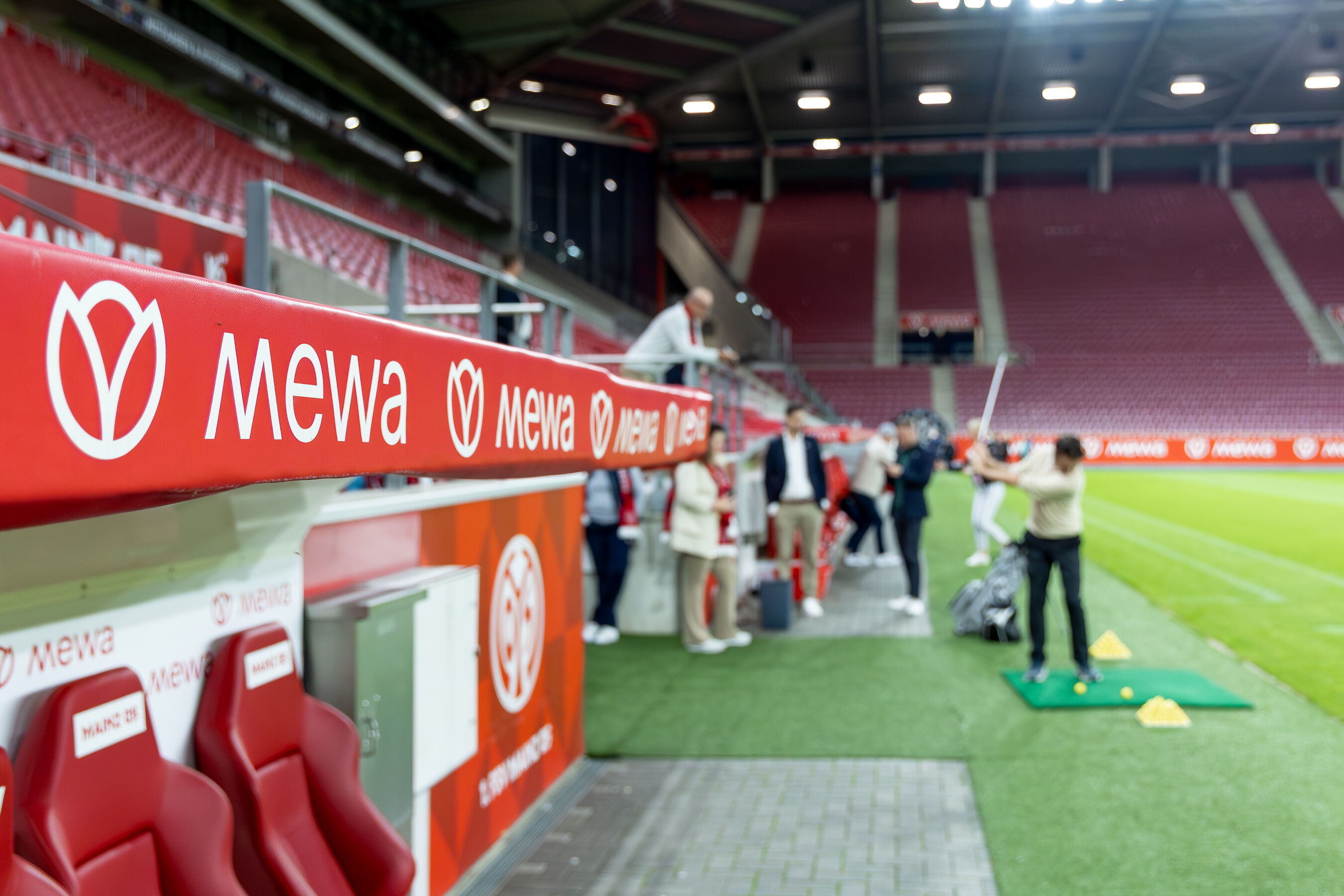 Das Golfevent verbindet auf einzigartige Weise zwei Sportwelten: die Fußballleidenschaft der 05ER-Fans und die Eleganz sowie Präzision des Golfsports. Statt mit dem Fußball, wurden an diesem Tag die Golfschläger geschwungen. Auf eigens errichteten kleinen Parcours konnten die Teilnehmerinnen und Teilnehmer in entspannter Atmosphäre ihr Golfgeschick unter Beweis stellen und dabei die besondere Stimmung der MEWA ARENA genießen.